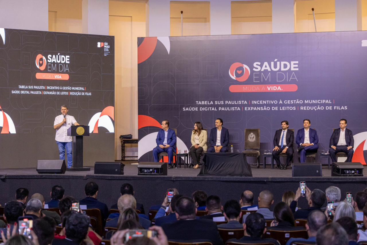 O evento reuniu prefeitos, secretários municipais de saúde e deputados federais e estaduais, além do vice-governador de São Paulo, Felicio Ramuth, e do secretário estadual de Saúde, Eleuses Paiva, entre outros representantes.
