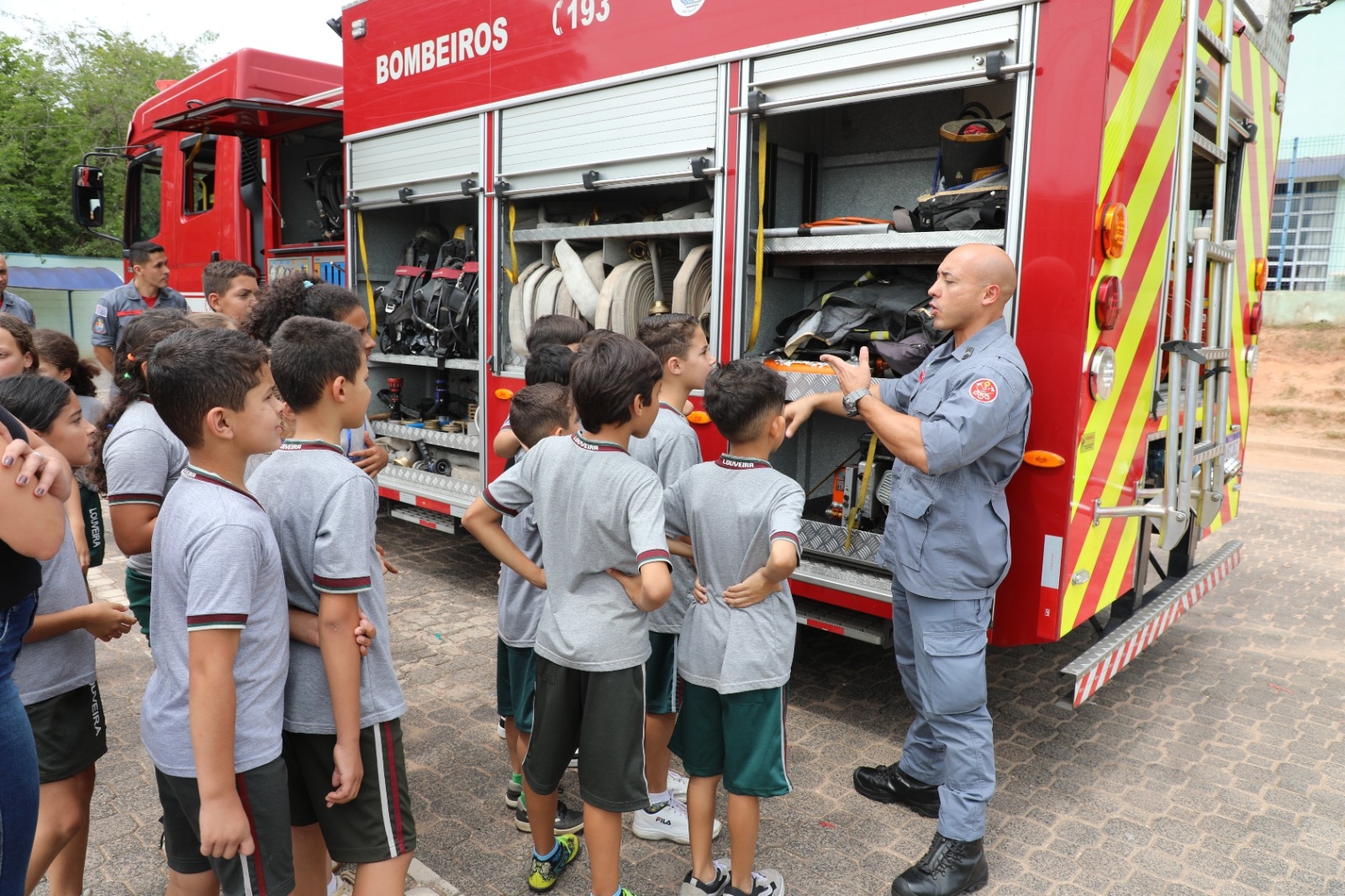 Além do aprendizado teórico, os alunos puderam interagir diretamente com os bombeiros, conhecer os equipamentos utilizados em resgates e até mesmo simular algumas situações de emergência, tornando a experiência mais dinâmica e educativa.