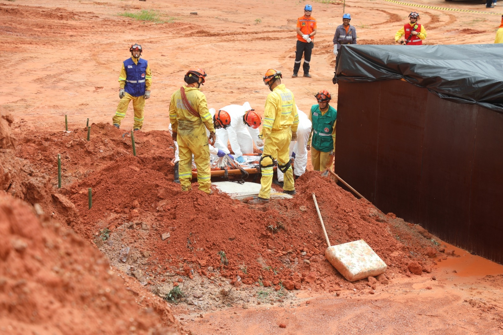 O simulado teve início com o acionamento via Cecom da Guarda Municipal, relatando um deslizamento que atingiu uma residência fictícia na Estrada Miguel Bossi, com vítimas soterradas.