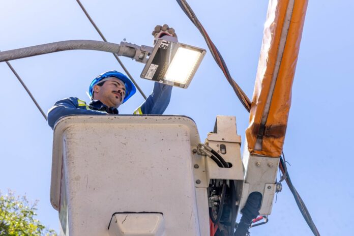 A ação teve início com a poda preventiva da copa das árvores ao longo da via. Na sequência, foi realizada a substituição das antigas lâmpadas a vapor por luminárias LED.