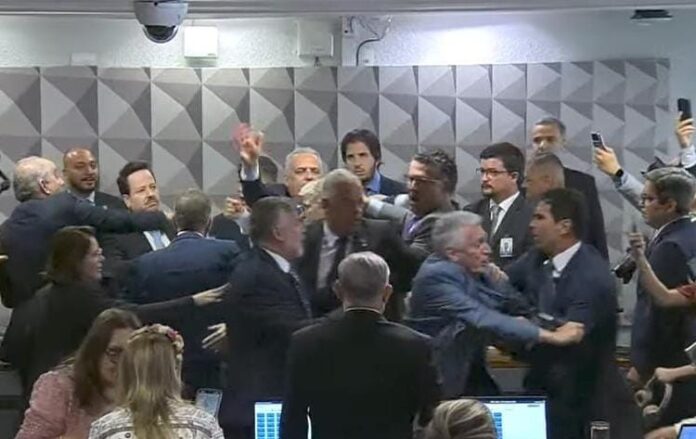Após a votação, simbólica, parlamentares do PT armaram grande confusão, com tentativas de agressão ao presidente da comissão, senador Carlos Viana (Podemos-MG), e o relator, deputado Alfredo Gaspar (União-AL). Após a oposição celebrar as aprovações, os deputados Rogério Correia (PT-MG) e Paulo Pimenta (PT-RS) partiram para cima da mesa diretora do colegiado.
