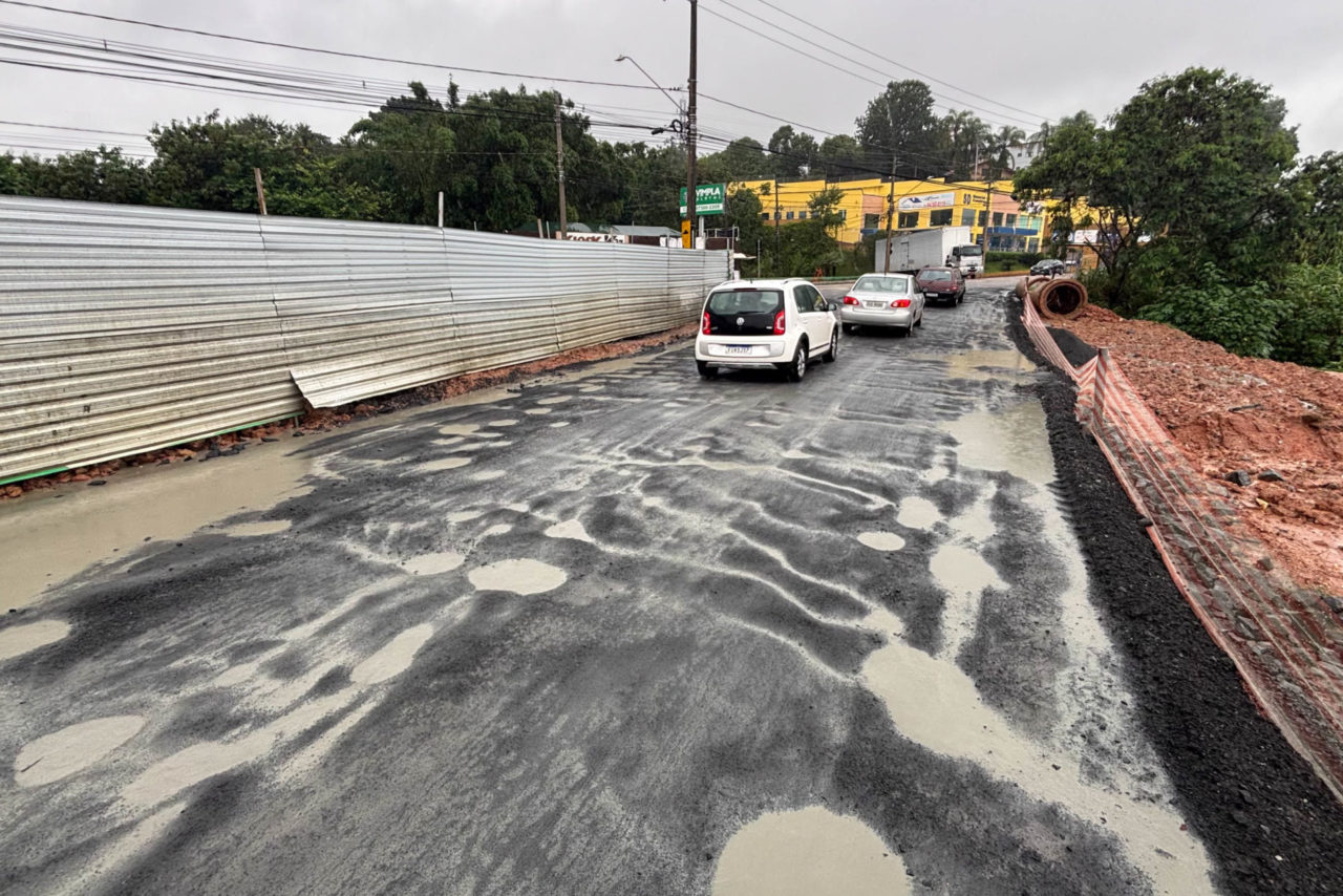 Entre as intervenções obrigatórias previstas para o projeto está a implantação do sistema de drenagem da região, obra que é de responsabilidade da empresa. Para a execução dos serviços, foi necessário um desvio de trânsito temporário, o que acabou comprometendo o pavimento de uma das vias utilizadas como rota alternativa.